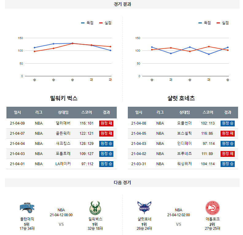 4월 10일 밀워키 샬럿 분석 NBA 농구
