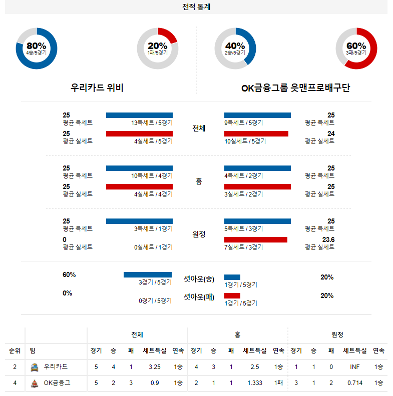 우리카드 승리를 예상한다. 확실한 공격 옵션을 보유하고 있는 우리카드가 편하게 경기를 풀어갈 것으로 예상한다. OK가 외국인 자원 펠리페를 앞세워 저항을 시도하지만, 최근의 빡빡한 일정으로 체력적 부담이 크다. 기대했던 득점력을 선보이긴 어렵다. 다양한 지표에서 우위를 점한 우리카드가 쉽게 승기를 잡는다.