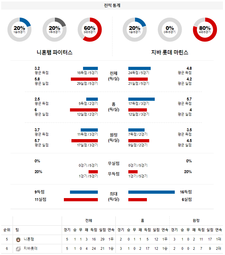요시다는 지난 시즌 완전히 무너지는 모습을 보였지만 니혼햄 불펜진들의 피칭이 나쁘지 않다. 직전 경기에서 홈런을 터트린 레오니스 마르틴과 브랜던 레어드를 막을 가능성이 충분하다. 반면 지바 롯데는 후타키가 이미 무너진 가운데 불펜진까지 불안하다. 직전 경기에서 3안타를 때려낸 노무라 유키를 막지 못하며 니혼햄이 승리할 전망이다.