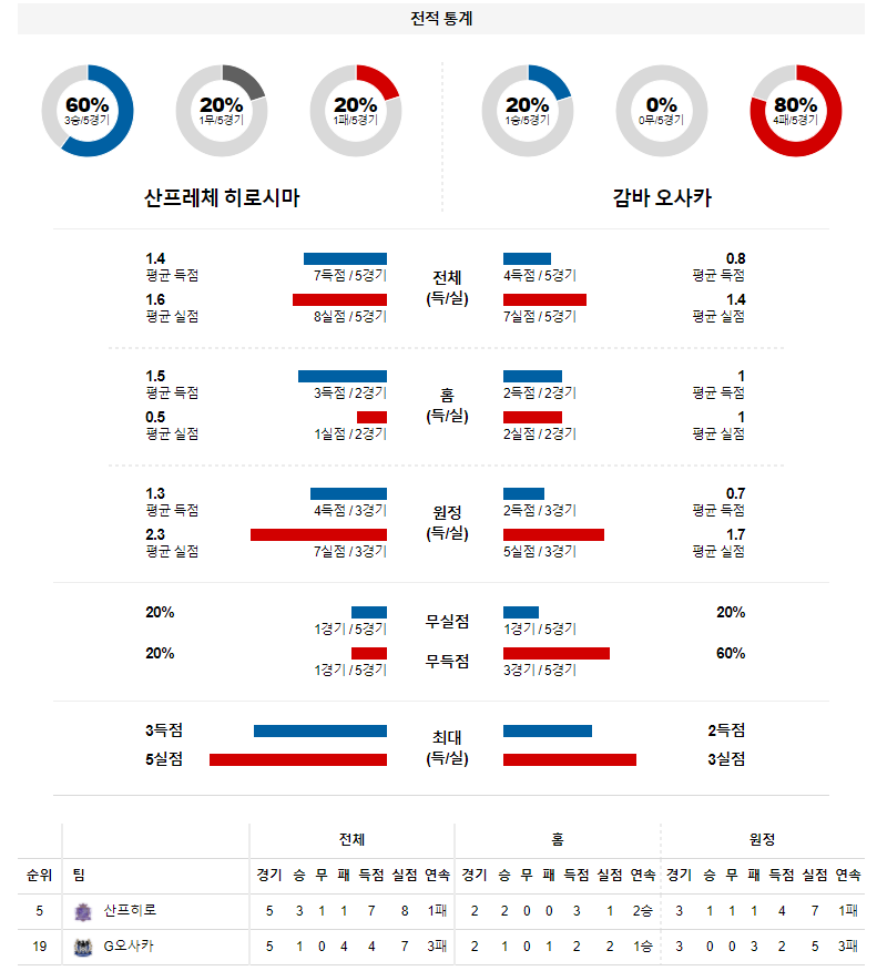 1. 최근 6경기 맞대결 : 6전 3승 1무 2패 5득점 9실점 (감바 우세)