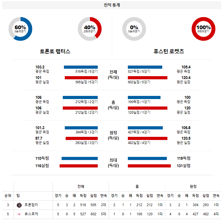 주전과 세컨 유닛의 생산성에서 토론토가 모두 우위에 있는 전력 이다. 핸디캡 승부에서도 토론토가 유리하다.