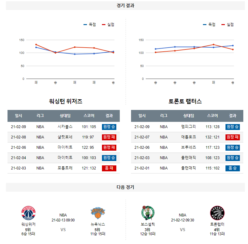 2월 11일 워싱턴 토론토 분석 NBA 농구