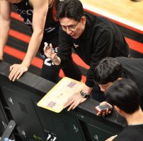 수원 KT 서동철 감독이 경기 중 선수들에게 지시하고 …