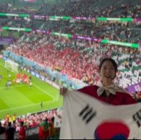 ‘♥박지성’ 김민지, 16강 진출 현장서 태극기 휘날리…