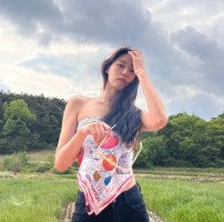 설현, 가슴에 명품 스카프 달랑 하나 두른 패션..아찔…