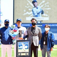 [포토]1000탈삼진 이재학, 기분좋은 시상식