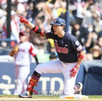 [포토] 3루타 박승욱 '득점하러 가자'