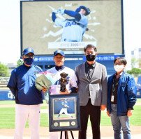 [포토]3000경기 출장 손아섭, 기분좋은 시상식