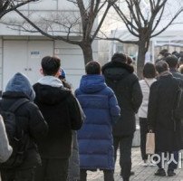 [포토]선별진료소 앞에 길게 늘어선 대기줄