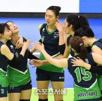 현대건설 선수들이 4일 수원체육관에서 열린 2021-2022 V리그 여자부 현대건설과 KGC인삼공사의 경기에서 풀세트 접전 끝에 KGC인삼공사에 승리한 뒤 함께 기뻐하고 있다. 현대건설은 7연승을 기록했다. 2022. 1. 4. 수원 | 박진업기자 upandup@sportsseoul.com