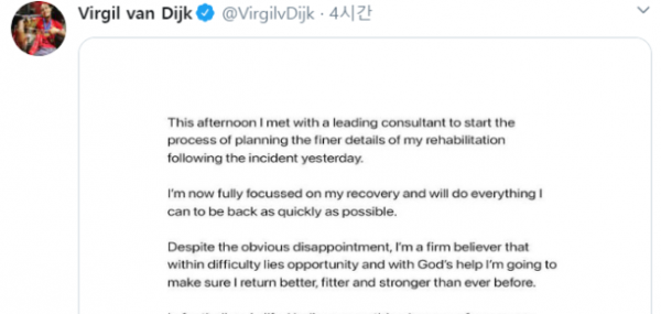 반 다이크 살인태클에 수술대로..무너진 강철몸