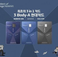 [사진= 현대카드]현대카드가 대한항공·제네시스·SSG닷컴 등 세 상업자전용신용카드(PLCCL) 파트너사의 혜택을 하나의 신용카드에 모은 PLCC인 '삼체(3 Body)-A 카드'를 선보인다고 28일 밝혔다.그간 PLCC는 한 브랜드의 리워드(보상)만 적립할 수 있다는 개념으로 쓰였다. 하지만 이런 통념을 깨고 상품 협업에…