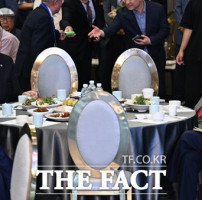 [더팩트ㅣ이새롬 기자] 대한노인회 제19대 대한노인회장 선거가 27일 서울 마포구 케이터틀에서 열린 가운데, 이규택·이중근·김호일·오제세 후보(왼쪽부터)가 투표 결과를 기다리고 있다.이중근 부영 회장은 이날 선거에서 총 273명 투표수 중 187표를 얻어 19대 대한노인회장에 당선됐다. 이 회장은 "책임이 무겁다. 우리 …