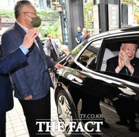 [더팩트ㅣ이새롬 기자] 제19대 대한노인회장으로 당선된 이중근 부영그룹 회장이 27일 서울 마포구 케이터틀에서 열린 대한노인회장 선거를 마친 뒤 지지자들의 인사를 받으며 이동하고 있다.이 회장은 이날 선거에서 총 273명 투표수 중 187표를 얻어 19대 대한노인회장에 당선됐다. 이 회장은 "책임이 무겁다. 우리 노인회가…