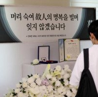 6월 19일 오전 강원 인제군 인제읍 남북리 인제체육관에서 육군 12사단 신병교육대대 수료식이 열렸다. 체육관 입구에 최근 군기훈련(얼차려)을 받다가 쓰러져 숨진 훈련병을 추모하는 공간이 마련돼 한 수료식 참석자가 헌화하고 있다. [사진=연합뉴스]군이 '육군 12사단 훈련병 사망사건' 수사에서 훈련병들의 설문조사 원본 등…