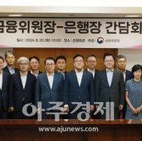 [사진=유대길 기자 dbeorlf123@ajunews.com]김병환 금융위원장(앞줄 오른쪽 다섯 번째 부터)과 조용병 은행연합회장 등 참석자들이 20일 오전 서울 중구 은행회관에서 열린 '금융위원장-은행장 간담회'에서 기념촬영을 하고 있다. 2024.08.20 아주경제=유대길 기자 dbeorlf123@ajunews.com
