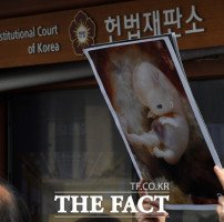 경찰이 임신 36주차에 낙태(인공임신중절) 수술을 받았다고 주장하는 영상을 올린 유튜버 사건과 관련해 수술을 진행한 의사를 특정했다고 밝혔다. 사진은 지난 2019년 4월11일 서울 종로구 헌법재판소 앞에서 낙태죄 유지를 주장한 시민단체 회원들이 기자회견을 하고 있는 모습. 기사 내용과 무관/남윤호 기자[더팩트ㅣ김시형 기…