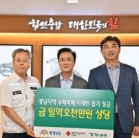 하나은행이 충남지역 호우 피해 복구를 위해 1억 5000만원 상당의 성금과 물품을 기탁했다.김태흠 지사는 19일 도청에서 열린 전달식에서 이동열 하나은행 충청영업그룹 대표로부터 성금 5000만원과 1억원 상당의 물품을 전달받았다.이번 기탁금은 침수 피해를 입은 가구의 전자제품, 가재도구 구매 비용으로 사용될 예정이다.김 …