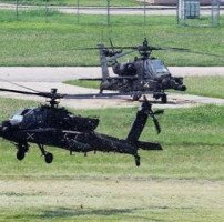 한국과 미국이 유사시 한반도 방어를 위한 정례 연합 훈련인 '을지 자유의 방패'(UFS·Ulchi Freedom Shield) 연습을 이달 19~29일 실시한다고 밝힌 12일 경기도 평택시 캠프 험프리스에서 아파치 헬기가 비행하고 있다. [사진=연합뉴스]행정안전부는 국가 비상대비태세 확립을 위해 오는 19일부터 22일까지…