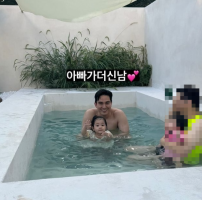 [스포츠서울 | 박효실 기자] 배우 윤진이가 다니엘 헤니 닮은꼴 남편, 딸과 즐기는 여름휴가 근황을 전했다.윤진이는 17일 자신의 채널에 나트막한 풀에 앉은 딸과 아이를 어르는 남편의 투샷을 공개했다. 시원한 풀에 들어간 아이가 신나는지 버둥대는 가운데 아이를 뒤에서 안은 남편의 얼굴에서 행복한 미소가 떠나지 않는 모습.…