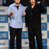 기안84(왼쪽)와 유태오가 16일 상암동 MBC 골든마우스홀에서 열린 예능프로그램 '태어난김에 음악일주' 제작발표회에 참석하고 있다. 김용학 기자 yhkim@sportsworldi.com 2024.08.16.