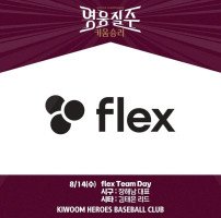 [스포츠서울 | 황혜정 기자] 키움히어로즈가 오는 14일 KIA와 홈경기에서 파트너사인 플렉스(flex)와 ‘플렉스 팀데이’ 행사를 진행한다.키움과 플렉스는 이번 파트너데이 명칭을 ‘플렉스 팀 데이 앳 고척스카이돔(flex Team Day at Gochoek Sky Dom)’으로 정했다. 플렉스 구성원 전원이 참석해 경기…