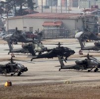 한·미가 '을지 자유의 방패' (UFS·을지프리덤실드) 연합연습을 개시한 지난 3월 경기도 평택시 캠프 험프리스에서 아파치 헬기가 이동하고 있다. [사진=연합뉴스]육군은 14일 제1기갑여단 진격대대와 미 1기갑사단 '선더볼트' 대대가 지난 9일부터 14일까지 경기 포천 승진훈련장에서 한·미 연합 소부대 실사격 기동훈련을 …