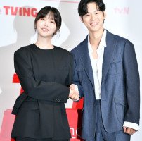 배우 김지은과 윤지온이 4일 신도림 라마도호텔에서 열린 tvN 새드라마 ‘엄마친구아들’ 제작발표회 무대에 올라 포토타임을 갖고 있다. 연출: 유제원, 출연:정해인, 정소민,김지은,윤지온. 2024.08.14.강영조기자 kanjo@sportsseoul.com
