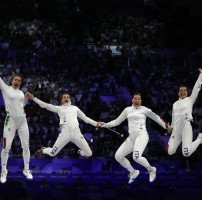 로셀라 피아밍고, 줄리아 리치, 앨버타 산투치오, 마라 나바리아로 구성된 이탈리아 대표팀이 지난달 31일 프랑스 파리 그랑팔레에서 열린 2024 파리올림픽 여자 에페 단체전 결승에서 금메달을 딴 후 기뻐 뛰어오르는 모습. [사진=AP뉴시스] ×이탈리아가 거액의 보너스를 푼다. 12일 미국 경제 전문지 포브스가 나라별 올림…