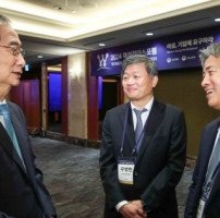 [포토] 한덕수 국무총리와 의견 나누는 현상순 아시아경제 회장